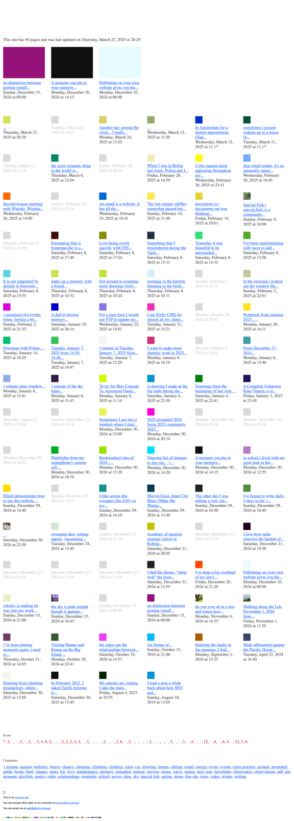 This is everything.elliott.computer. It was last updated on February 28, 2026 and contains 164 projects. This site is running on Elliott's Computer. Browse other sites on the computer at home.elliott.computer.