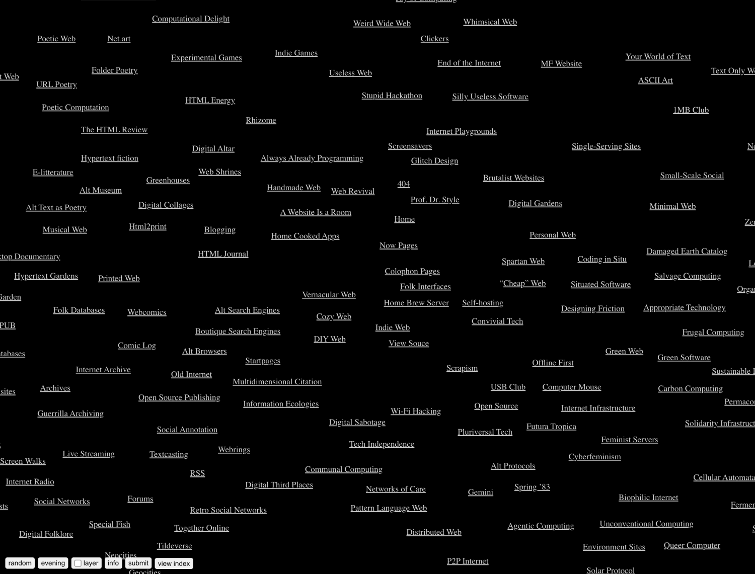 "I made a map of the Internet. It is incomplete. You won’t find links to social media sites, big corporations or advertisement renderings. In fact, most of the Internet is missing from the map. Hence, it is more accurate to describe the map as My Internet or the Naive Internet Universe." – Kristoffer Tjalve