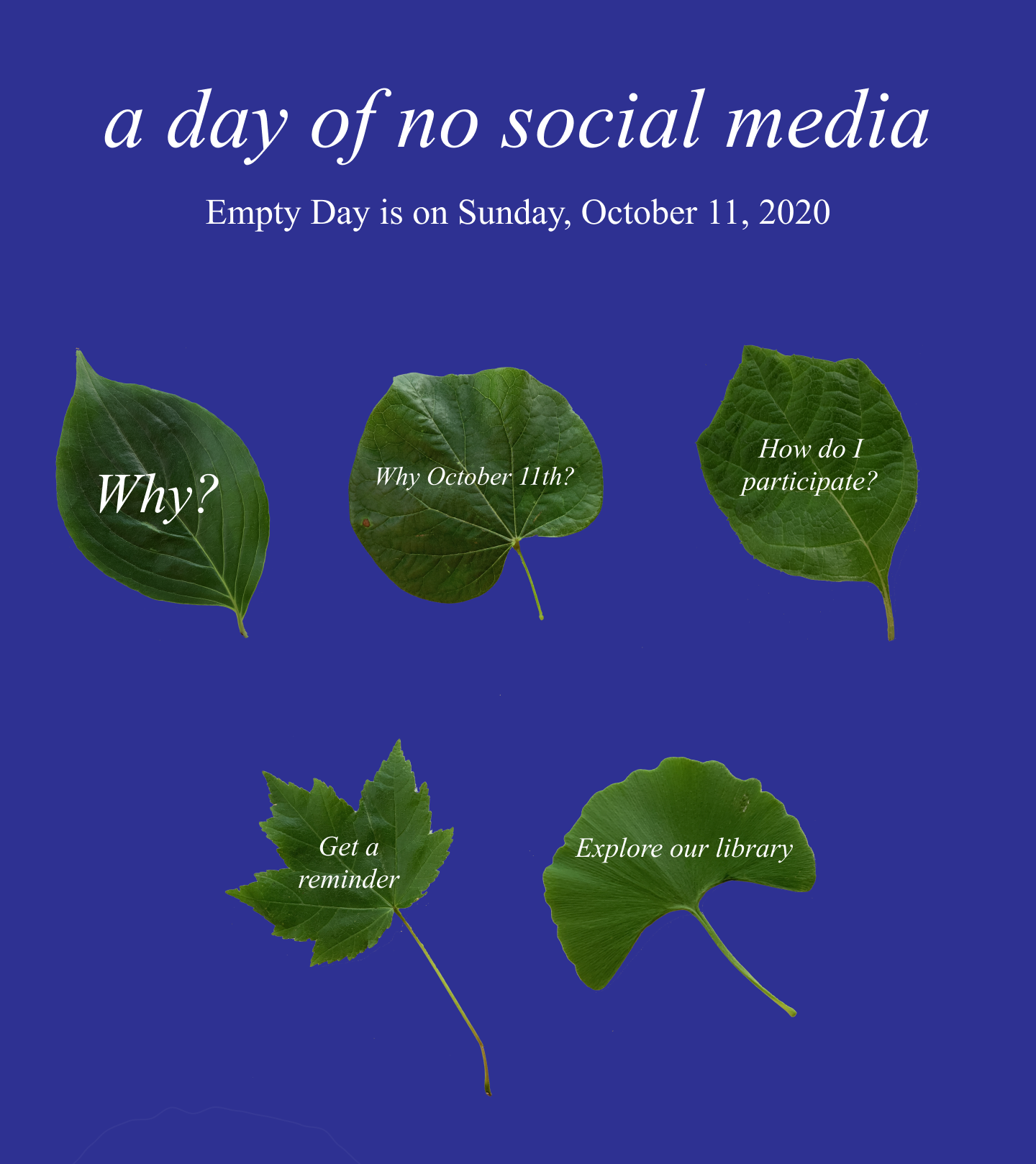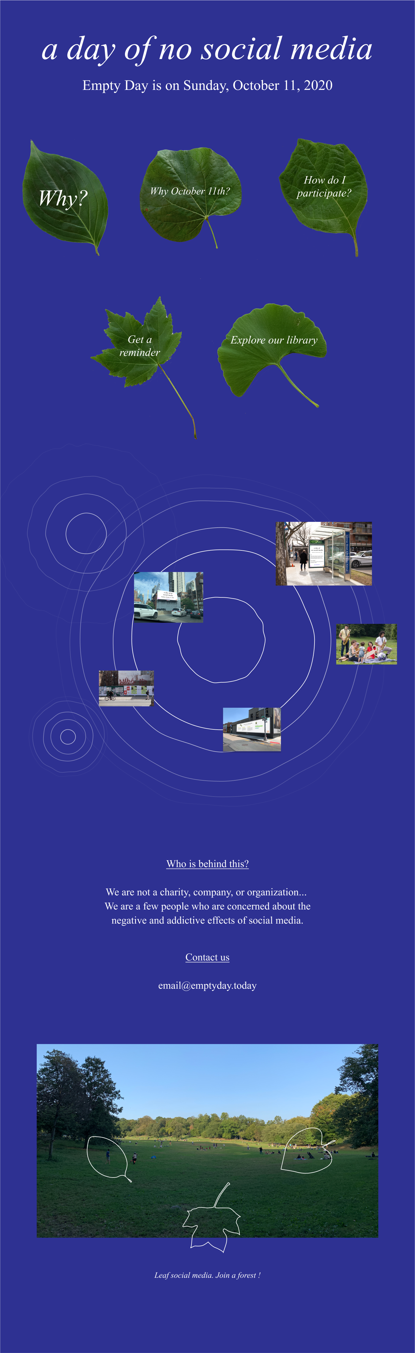 Website for Empty Day 2020 (a day of no social media). In collaboration with Laurel Schwulst.