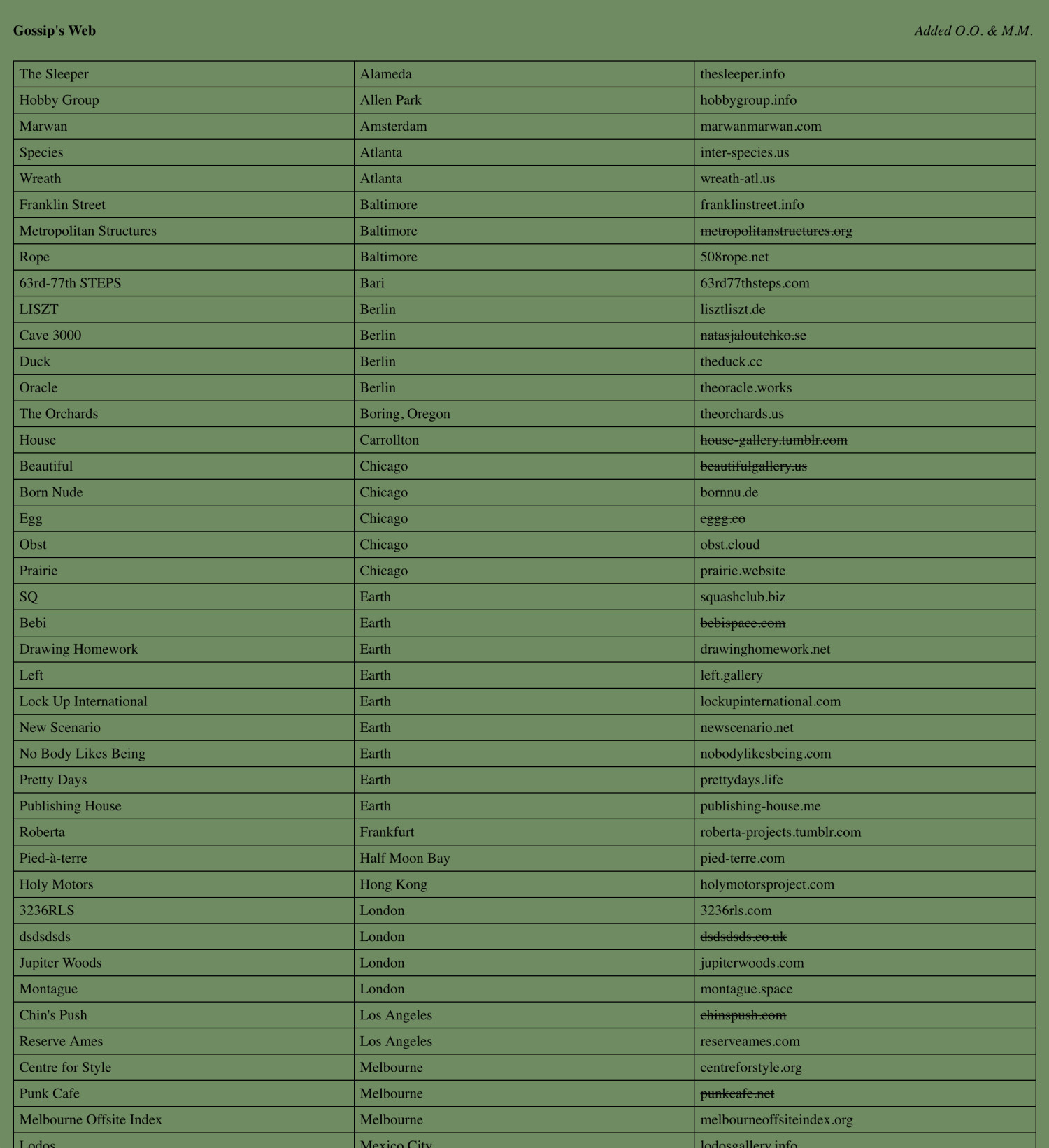 Index of artist-run project spaces around the world.