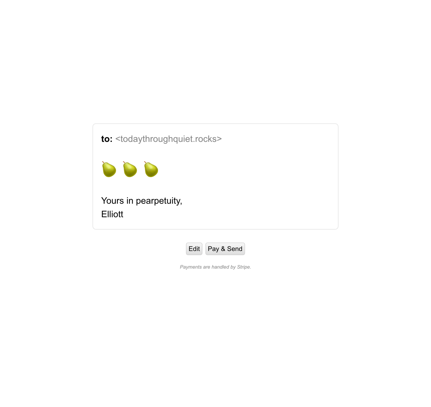 A website to purchase and send the idea of a pear to a friend.