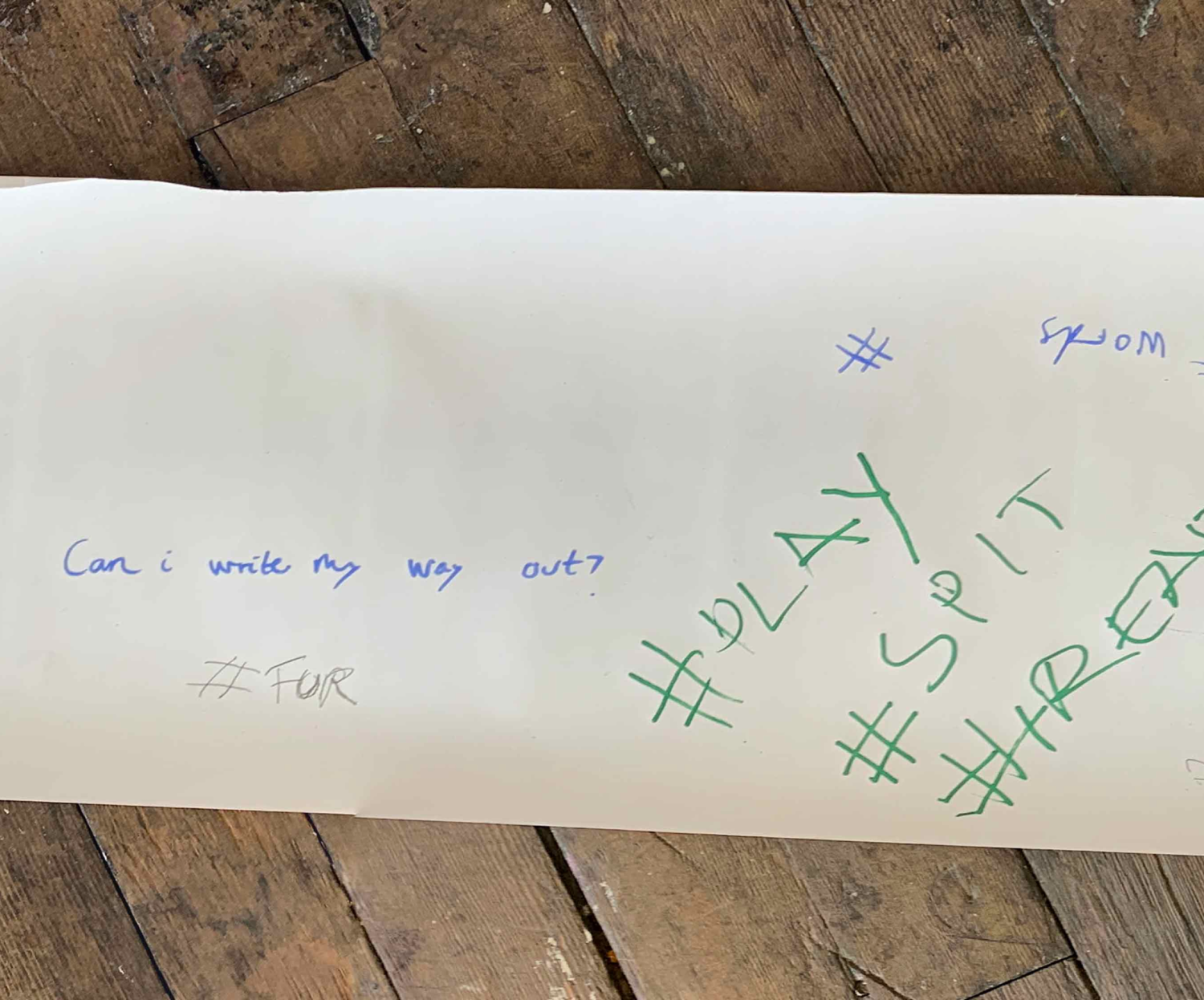 A scrolling panorama of a collaborative URL created during a irl-url workshop given at KABK.