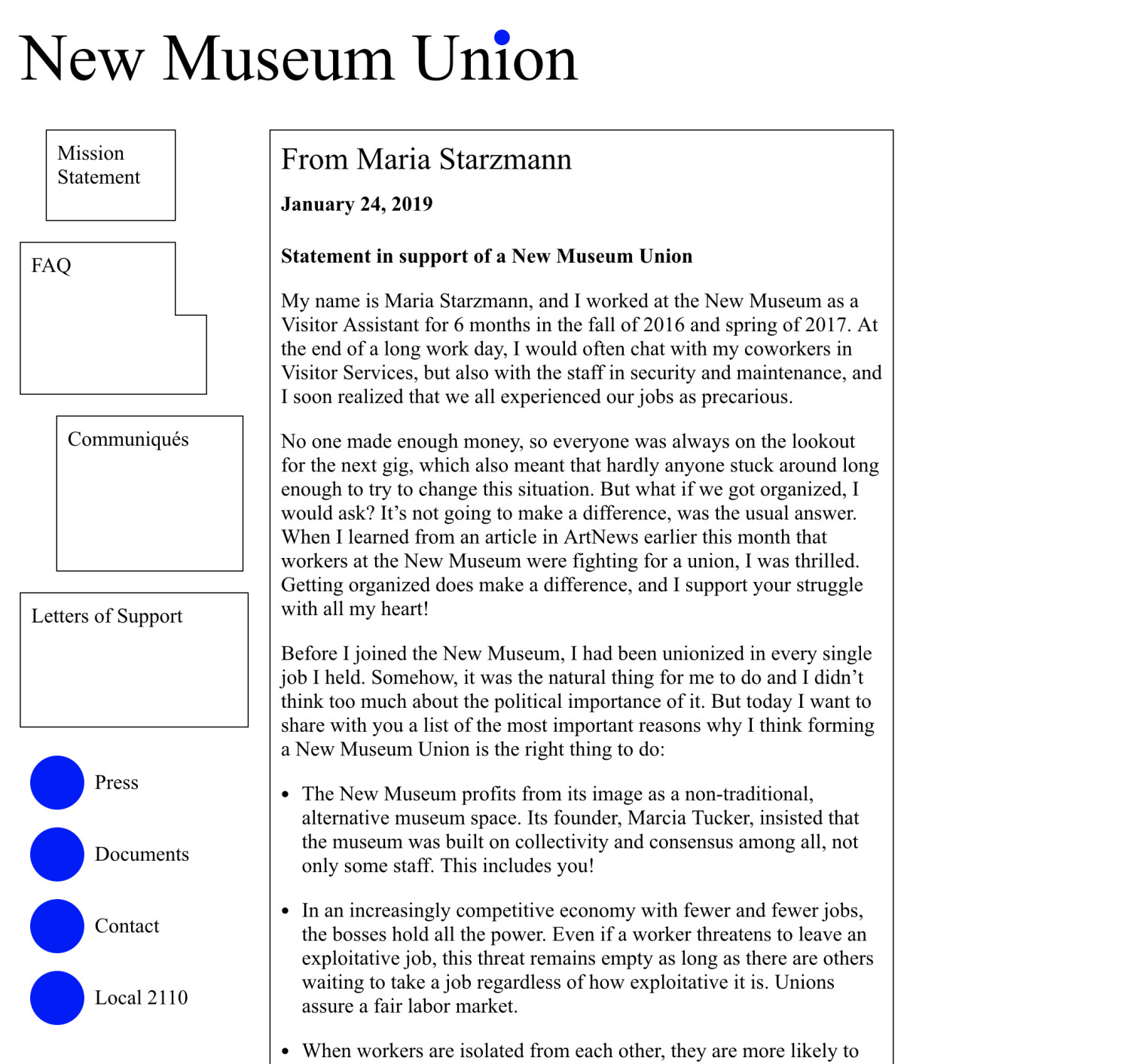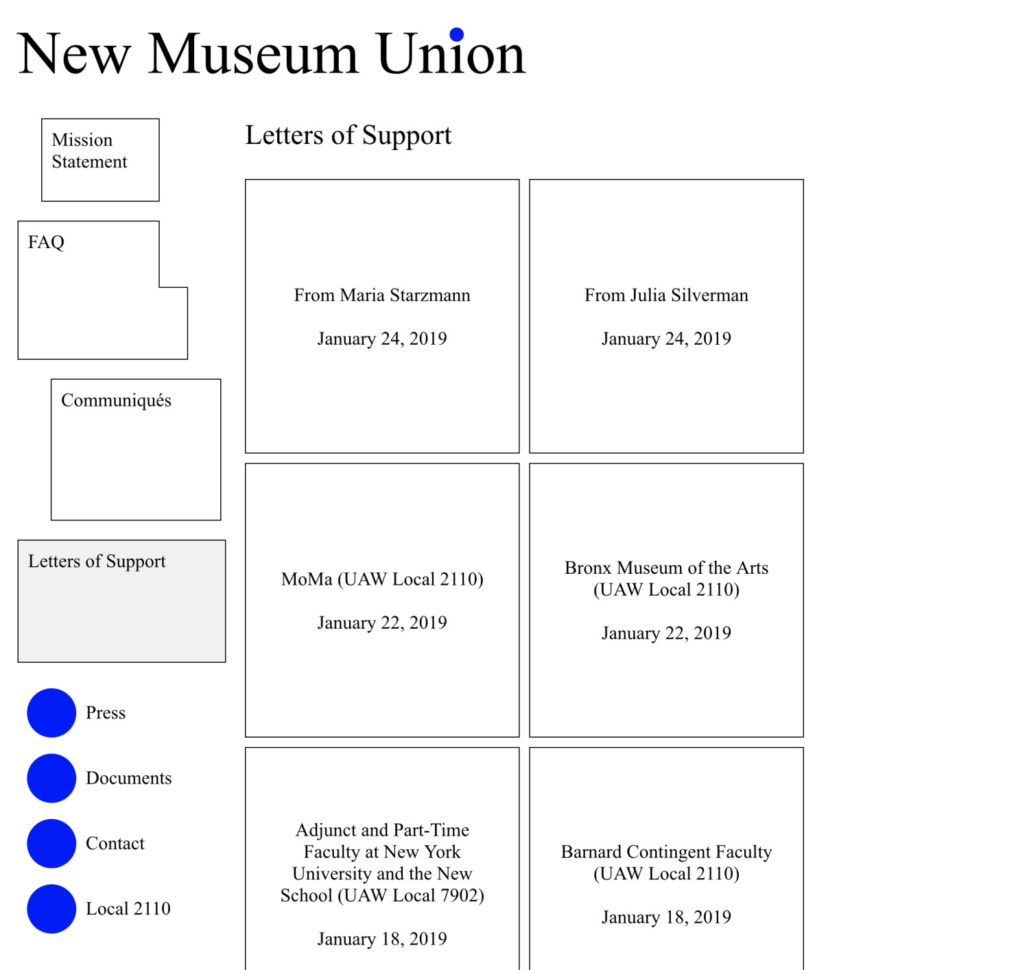 A website and resource for the New Museum Union. Circular logo by Laura Coombs.