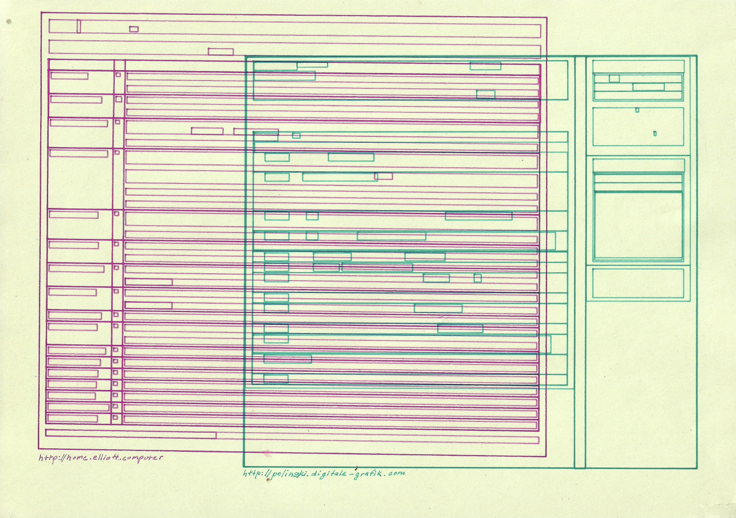 Tracings of the elements from polinsski.digitale-grafik.com (turquoise pen) and home.elliott.computer (magenta pen)