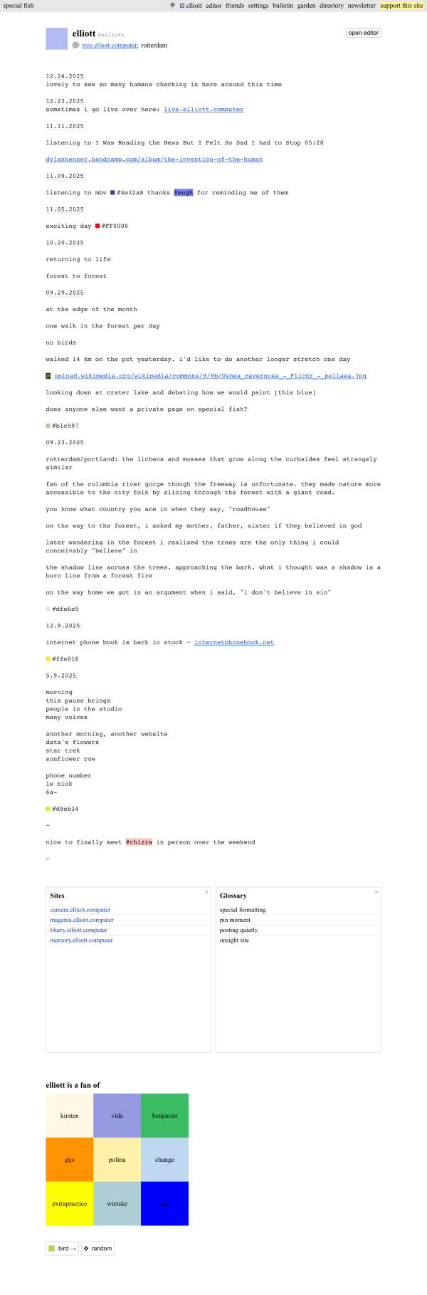 This is everything.elliott.computer. It was last updated on March 31, 2026 and contains 164 projects. This site is running on Elliott's Computer. Browse other sites on the computer at home.elliott.computer.