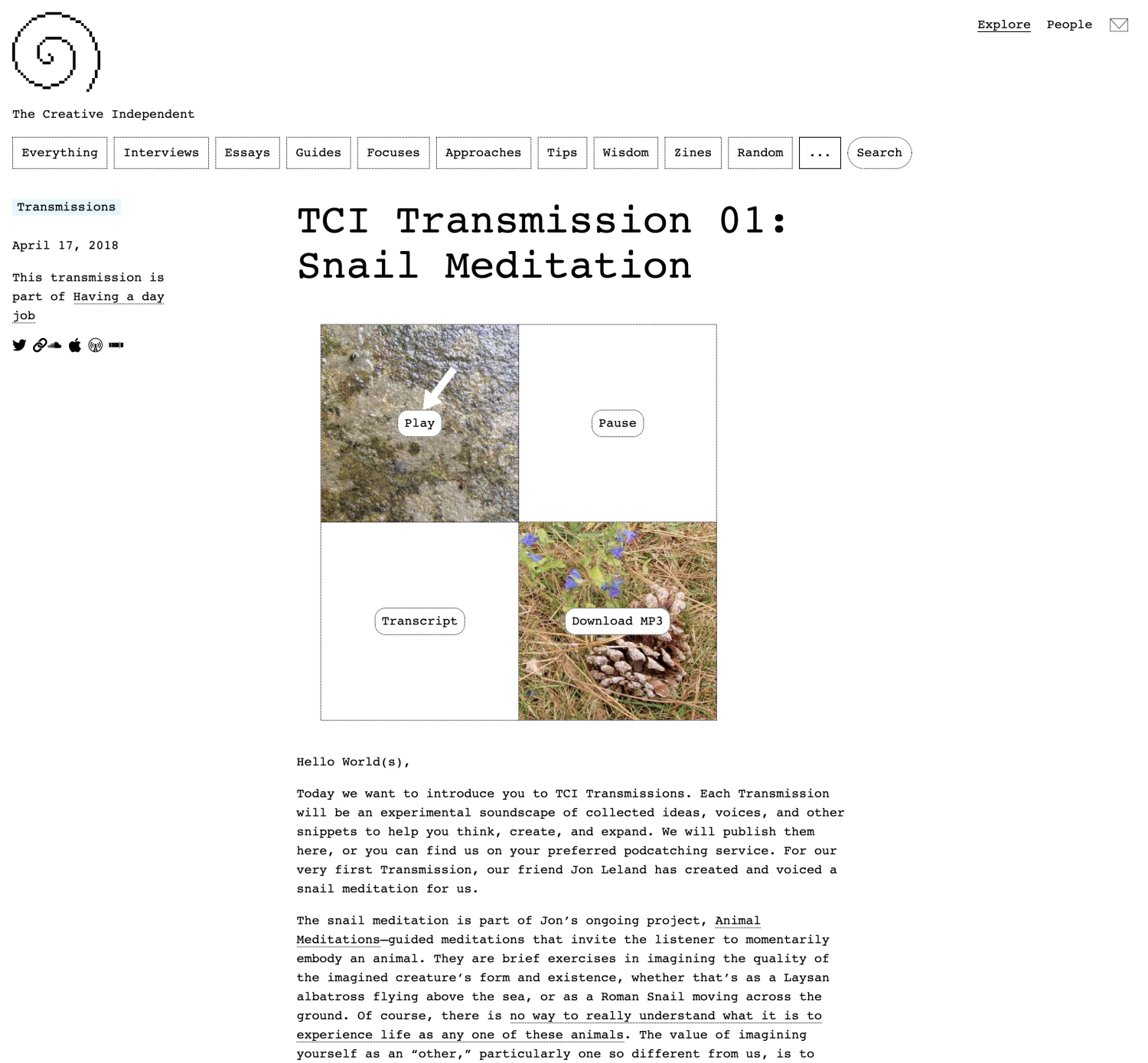 Design and development of core aspects of The Creative Independent website to make it more aligned with its mission of being a resource for creatives. Design assistance from Mikki Janower.