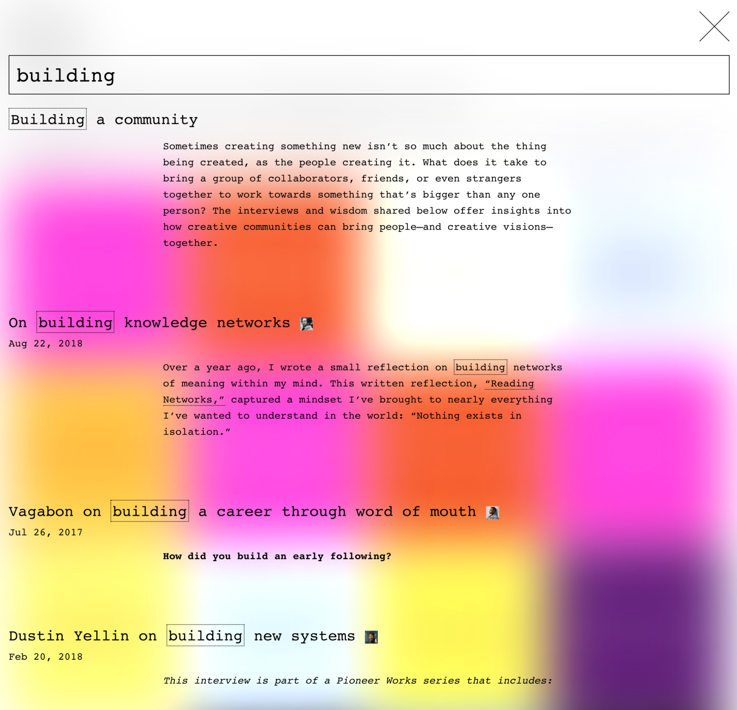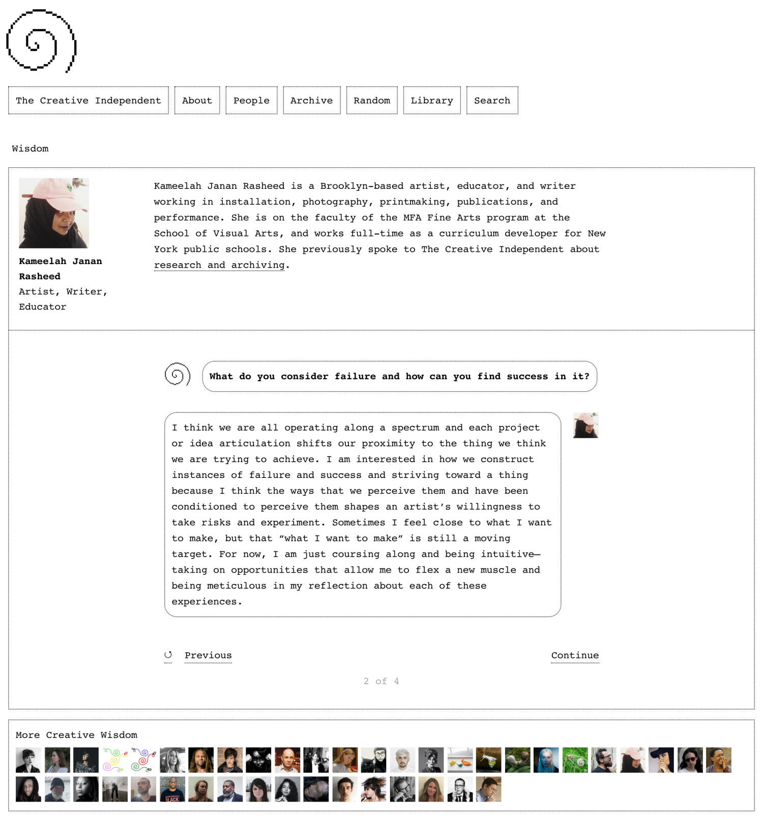 I was a full-time designer and developer at The Creative Independent, a creative resource published by Kickstarter PBC from 2017 to 2019.