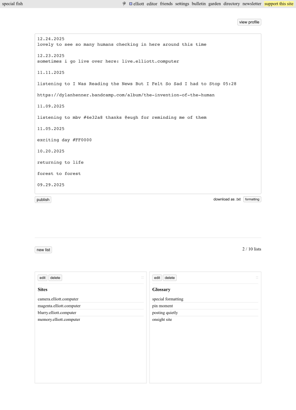 This is everything.elliott.computer. It was last updated on December 28, 2025 and contains 144 projects. This site is running on Elliott's Computer. Browse other sites on the computer at home.elliott.computer.