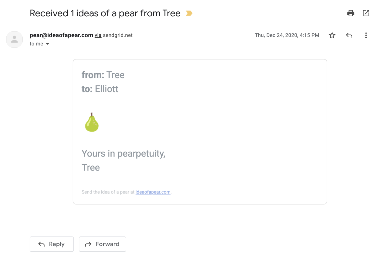 A website to purchase and send the idea of a pear to a friend.